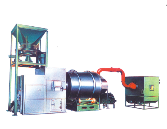 該裝置由翻斗加料機、斗式提升機、主傳動滾筒、燃燒爐、振動篩配以除塵抽風系統組成簡單的